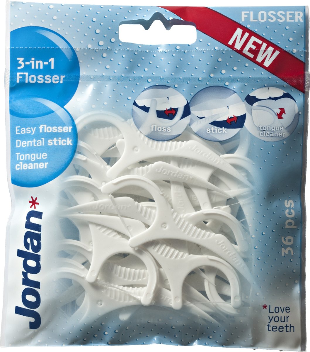 Denne 3-in-1 Flosser fra Jordan er en engangstandtråd med tre funktioner:
